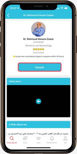 To contact the doctor, You have to download Cura app from the app stores, the next step is to open an account on the platfrom from inside the app, after that you can choose the appropriate doctor and consult it. You can communicate by writing, voice notes, voice calls, and video calls. All this is done within the App